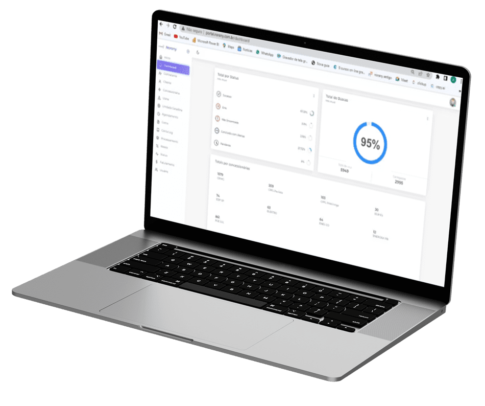 O sistema NORANY alerta sobre faturas não disponibilizadas pela Concessionária, orientando os clientes sobre as ações a serem tomadas. Gera relatórios detalhados para monitorar consumo, injeção e compensação de energia.